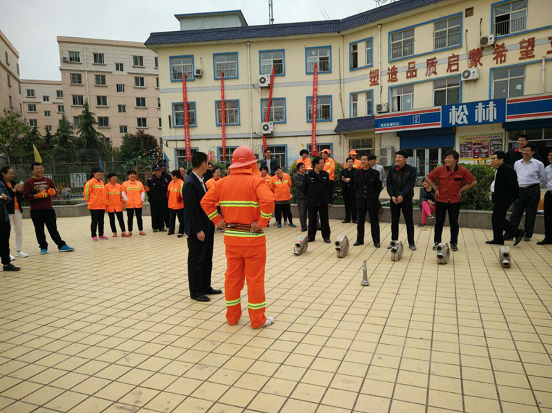 為了嚴格貫徹落實省市對于安全管理工作的相關(guān)規(guī)定,加強小區(qū)消防安全管理工作,進一步強化全體員工消防意識,增強防火自救能力,杜絕重大特大火災(zāi)事故的發(fā)生,為業(yè)主營造一個良好安全的居住環(huán)境。4月27日下午3時在安谷苑小區(qū)廣場,物業(yè)公司聯(lián)合消防維保單位舉辦了以“ 預(yù)防為主,消防結(jié)合”為主題的消防演練活動。物業(yè)公司領(lǐng)導(dǎo)班子,員工代表,維保人員,業(yè)主代表共計40余人參加了本次演習(xí)。
