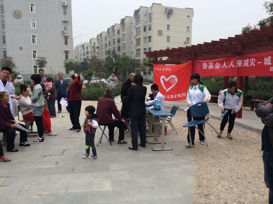 活動當日邵小麗青年志愿者服務隊共計20余人來到河南街小區(qū),為業(yè)主宣傳了小區(qū)居民在地震、火災等自然災害來臨時的自我保護和自我求生常識,并對前來參加活動的業(yè)主提供了義診服務。