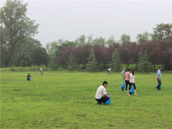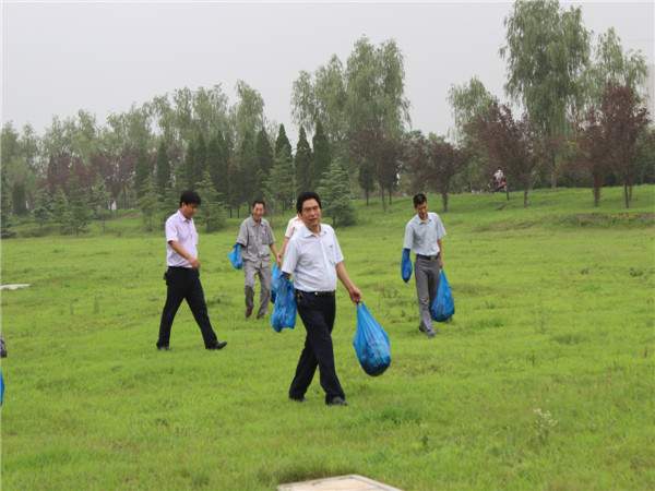 一大早,趙總親自帶隊,魏總協(xié)助配合,公司工會、團(tuán)支部積極協(xié)調(diào),合理將河南街、安谷苑、統(tǒng)一大樓、陜西中醫(yī)學(xué)院項目部以及機(jī)關(guān)人員分配于東西兩側(cè)草坪。在公司領(lǐng)導(dǎo)親力親為的感召下,全體員工干勁十足,經(jīng)過近兩個小時的清理,還原了景區(qū)綠化的整潔環(huán)境。